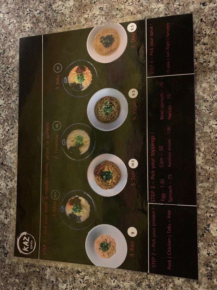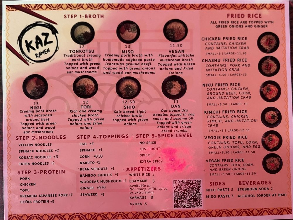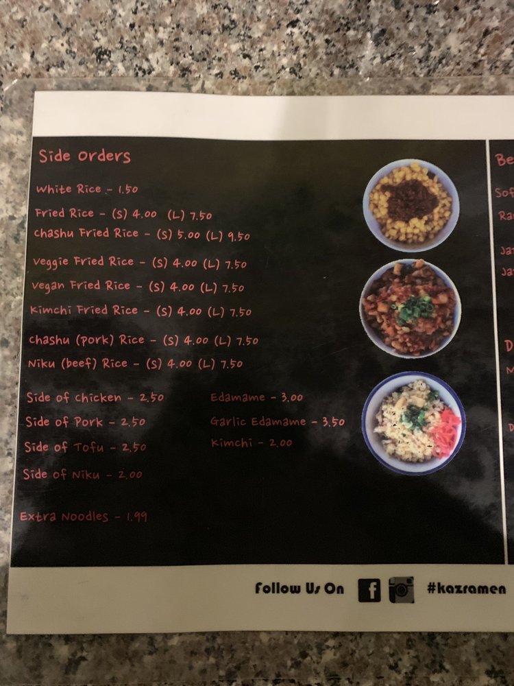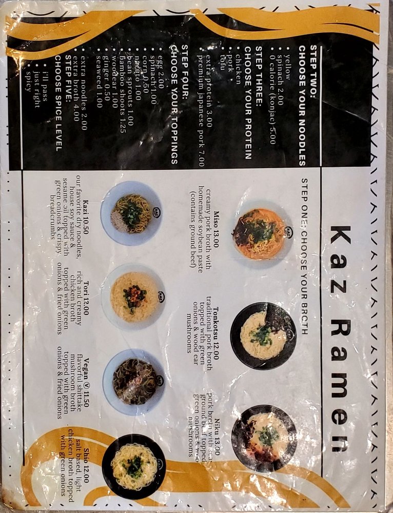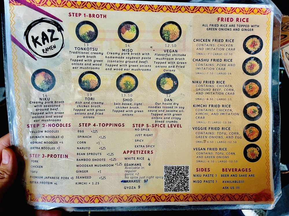 Kaz Ramen Menu (2025 Update)