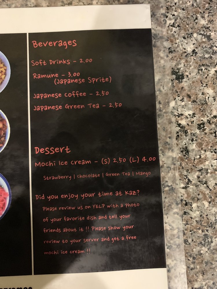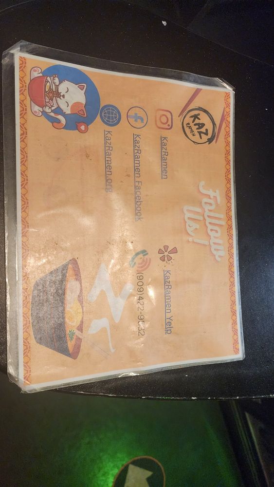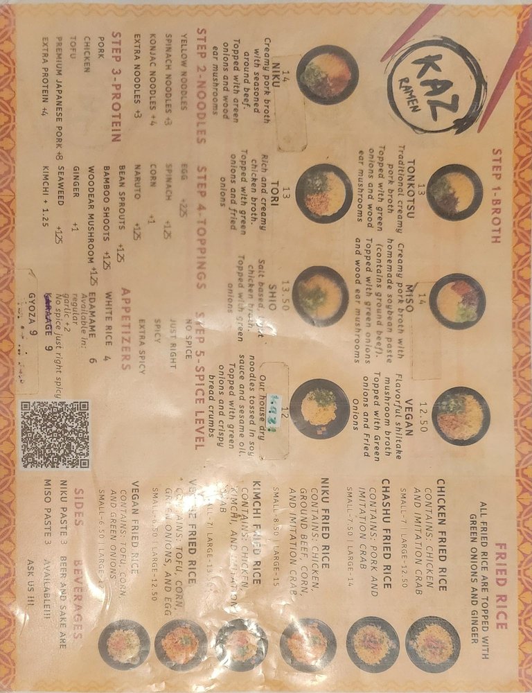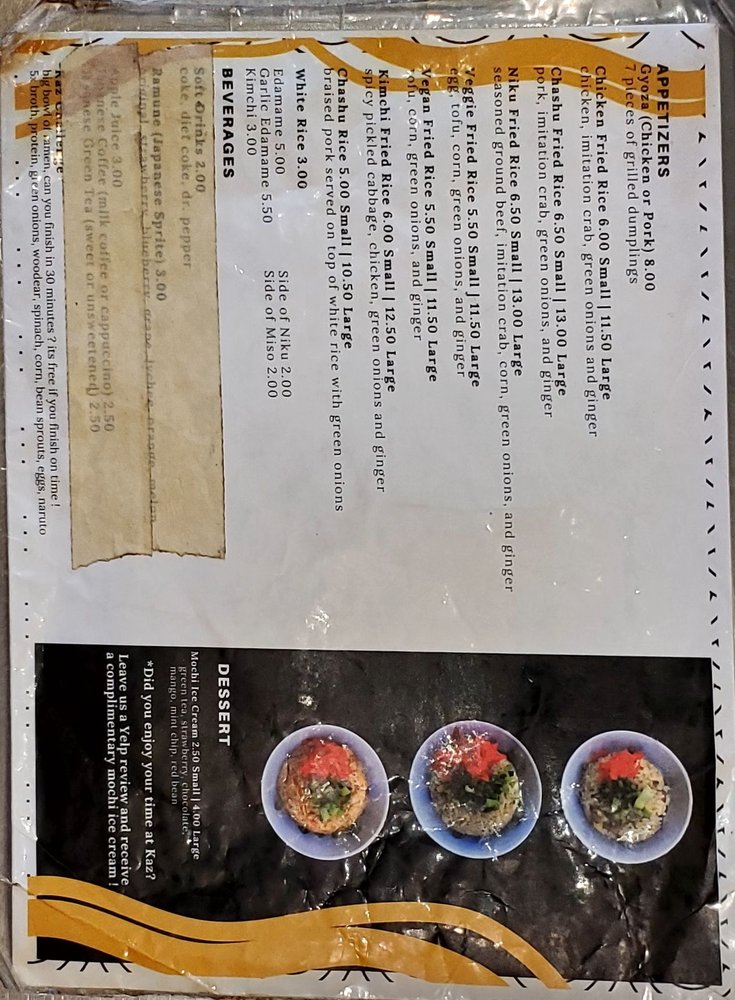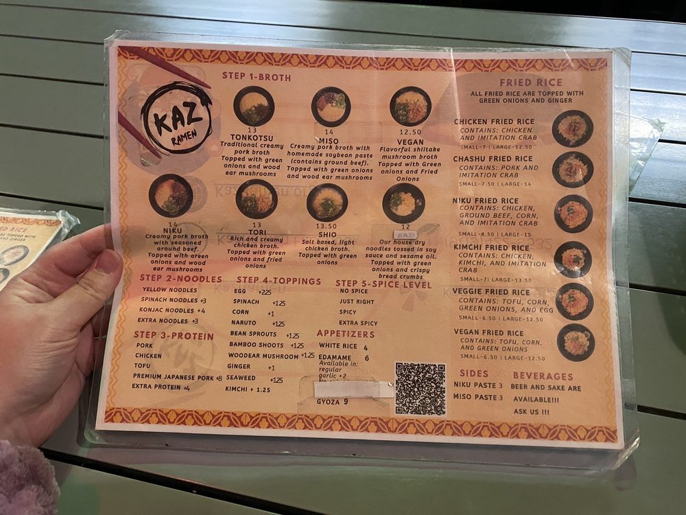 Kaz Ramen Menu (2025 Update)